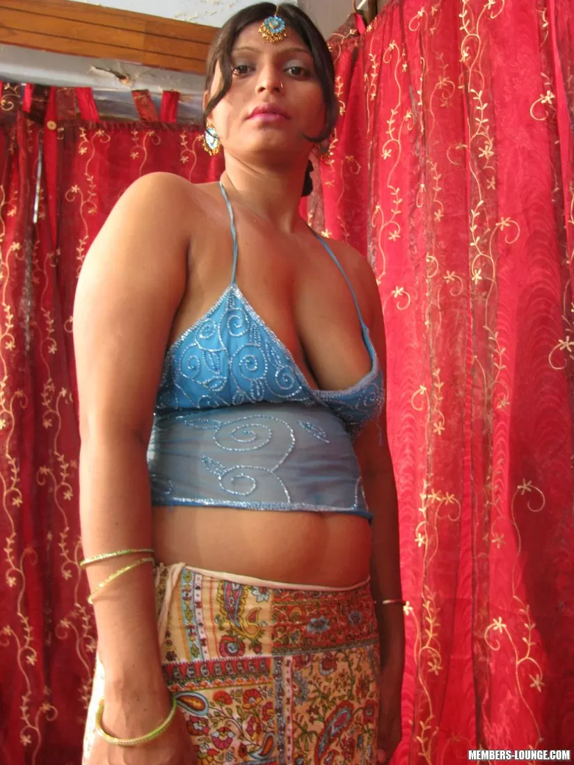 Пухленькая индианка обнажает свои натуральные сиськи и бритую киску на кровати