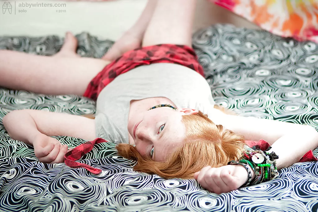Рыжеволосая панк-цыпочка Айседора ласкает все натуральные сиськи и пальчиками волосатую пизду