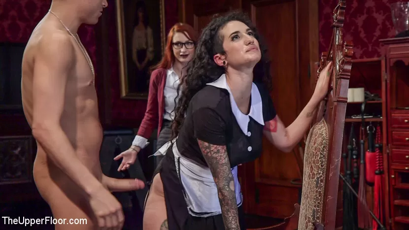 Рыжеволосую женщину бьет током во время того, как ее трахают в рот