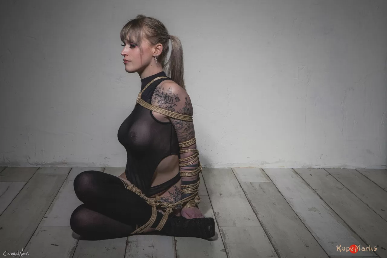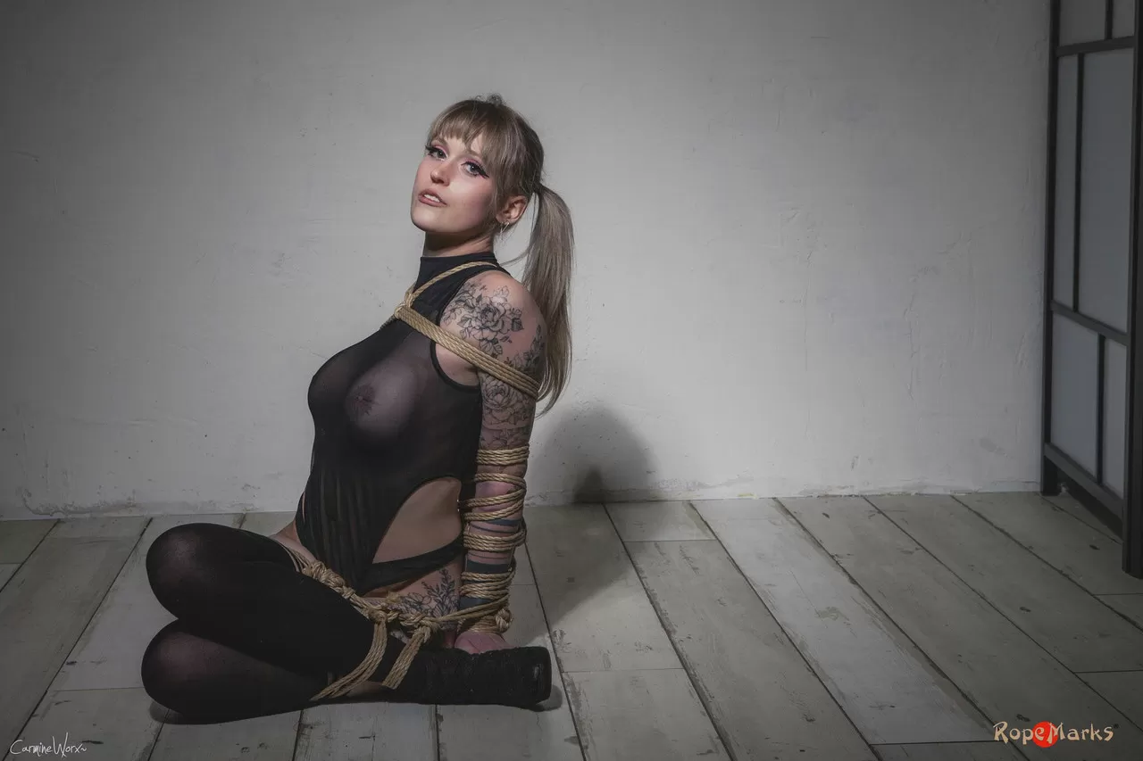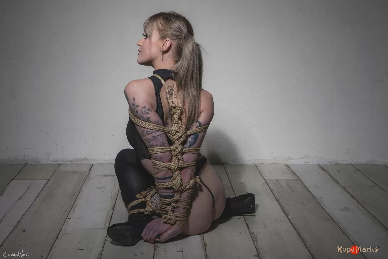 Сейза из кренделей с армбиндерблондой, Веревочный бондаж, Шибари