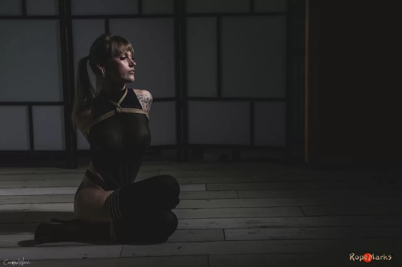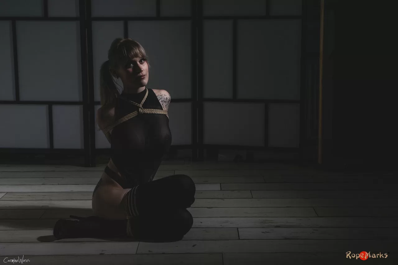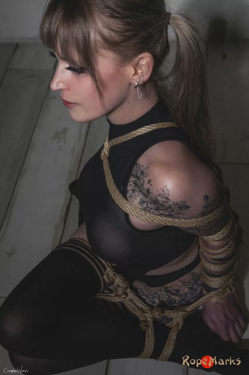Сейза из кренделей с армбиндерблондой, Веревочный бондаж, Шибари