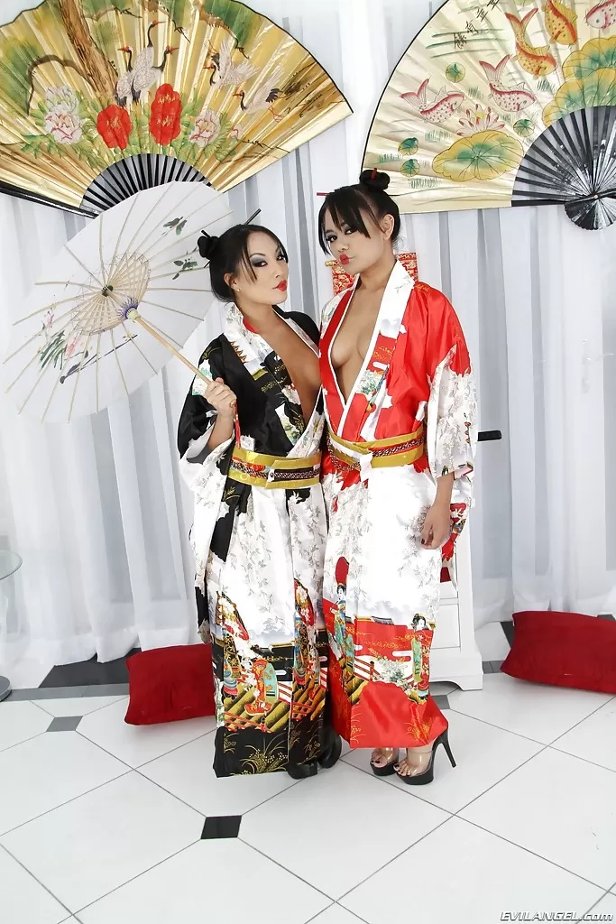 Сексуальные азиатские мамочки Энни Круз и Аса Акира позируют с игрушками в своих жопах