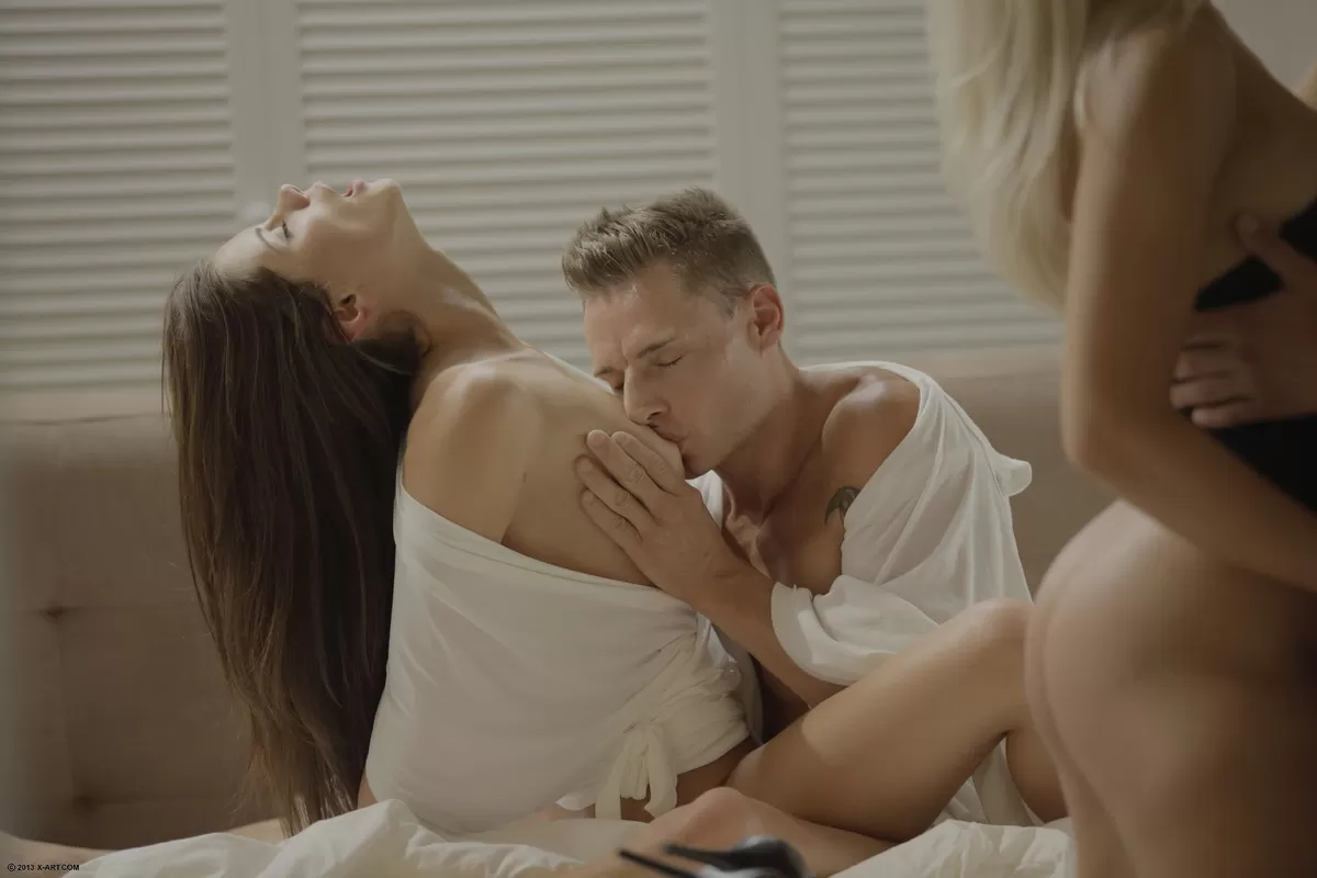 Сексуальные подружки целуются и лижут киски, в то время как их бойфренды смотрят на это