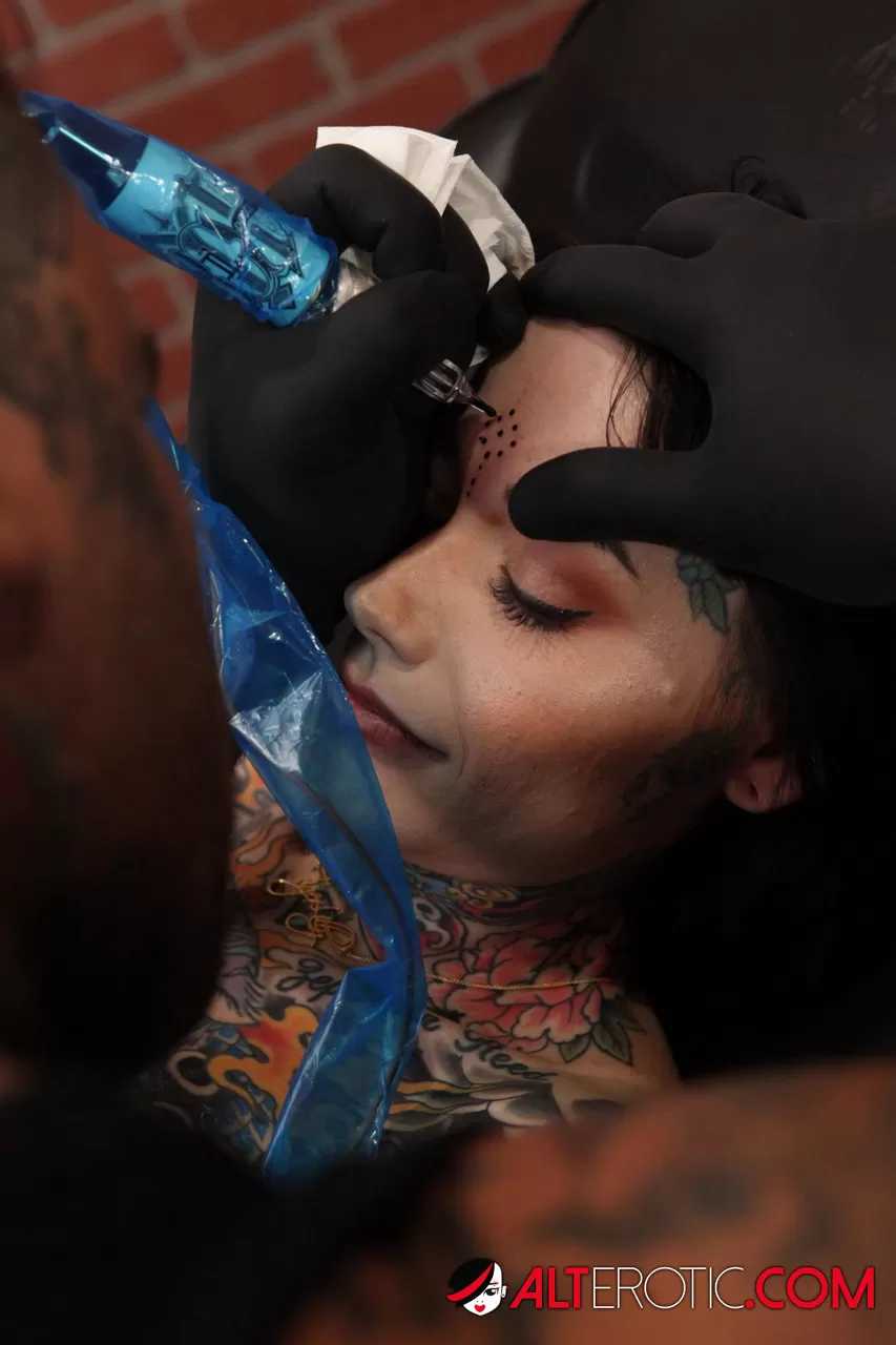 Сильно татуированная девушка Тайгер Лилли делает новую татуировку, будучи полностью обнаженной