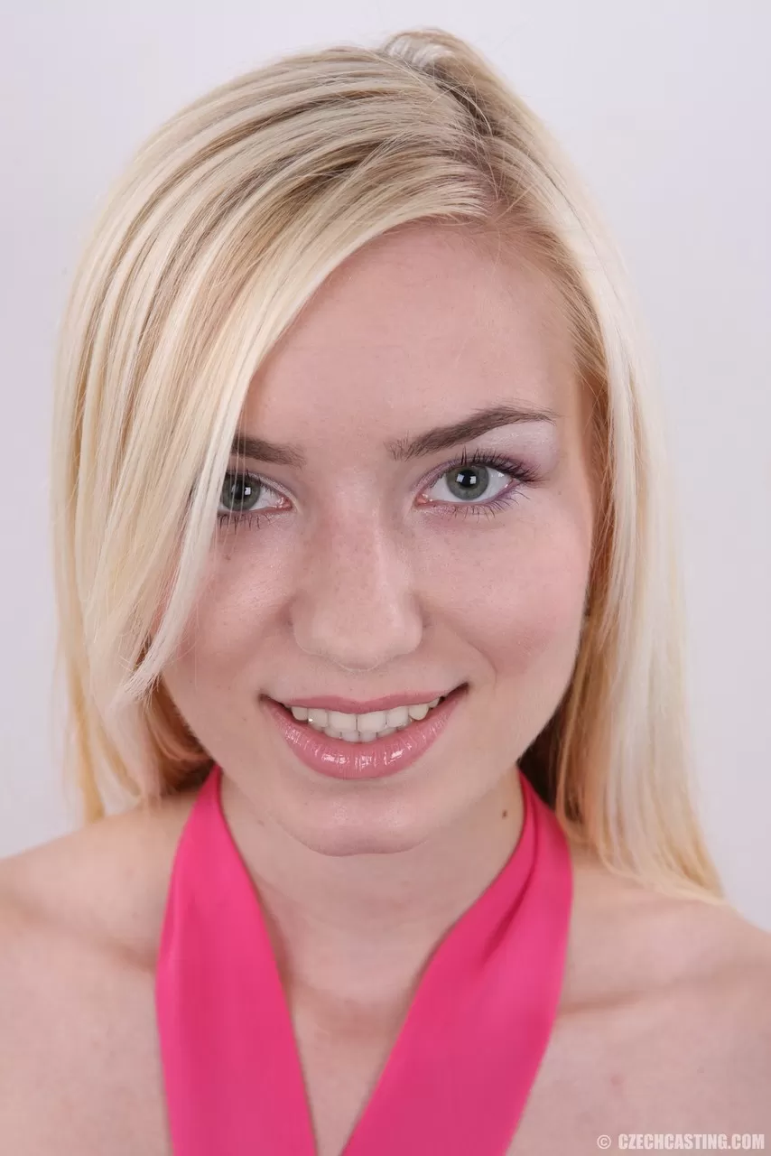 Симпатичная блондинка-любительница Тереза с маленькими сиськами раздвигает голышом клитор крупным планом