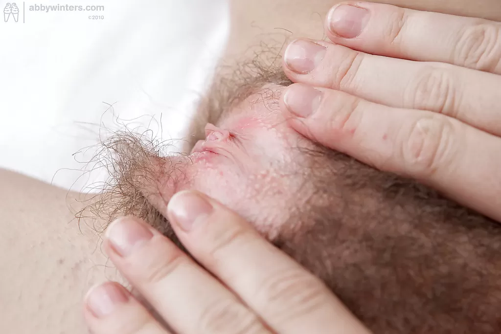 Симпатичная блондинка-первокурсница Николь Ди дрочит свой волосатый кустик в спальне
