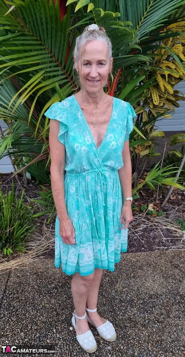 Старая блондинка Жаклин полностью раздевается в своей спальне