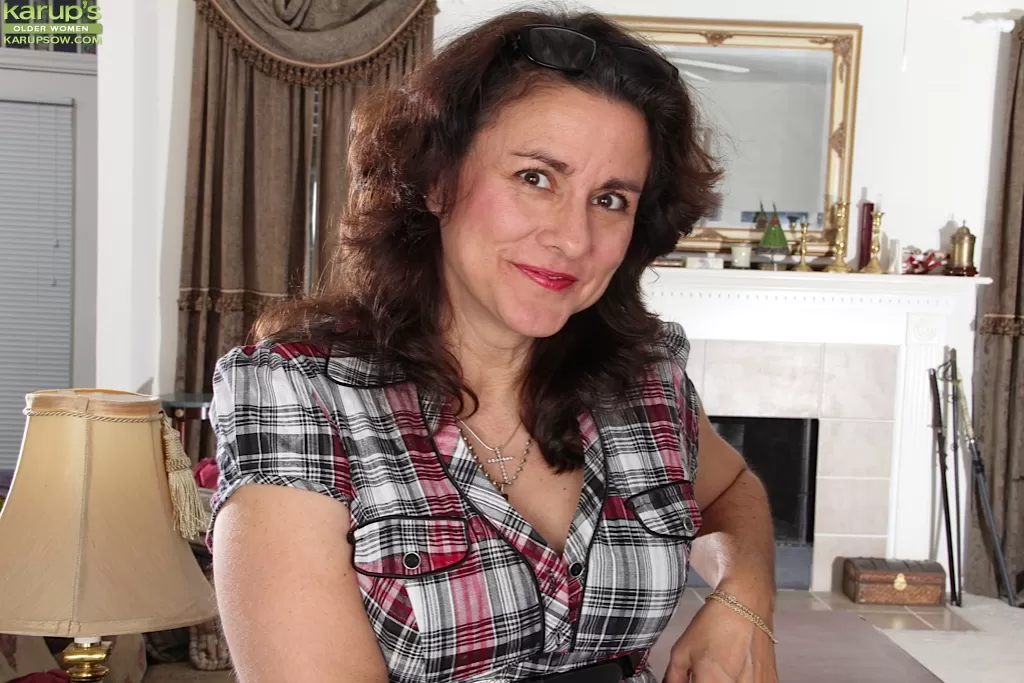 Старуха Джанна Джонс снимает с себя одежду и играет с кошечкой