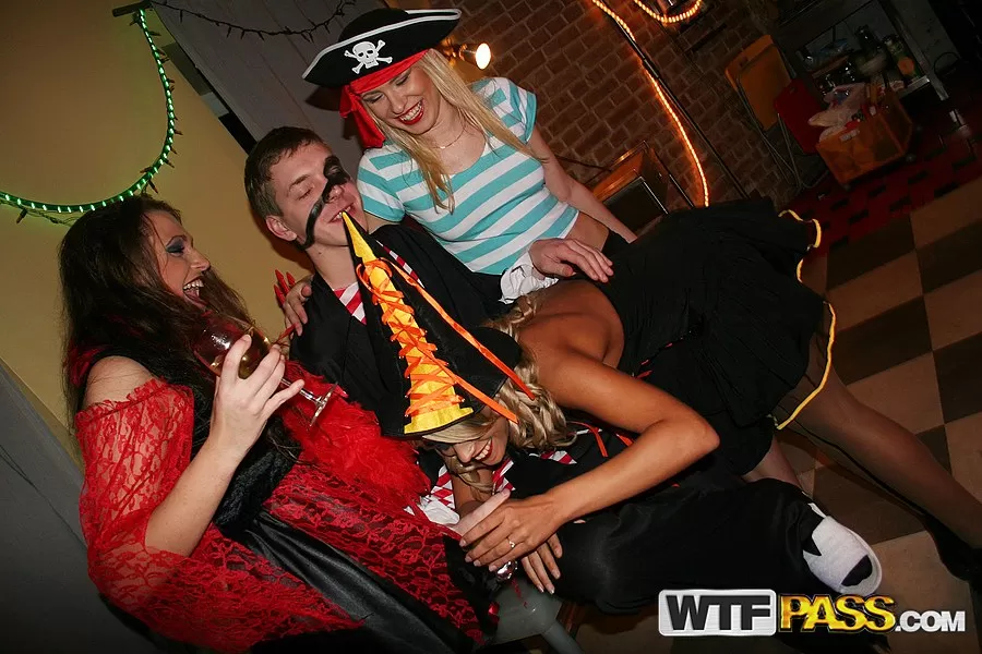 Студенты колледжа участвуют в групповом сексе во время вечеринки в честь Хэллоуина