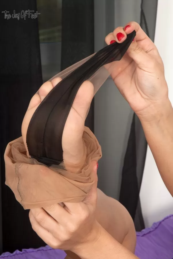 Темноволосая Хлоя Ловетт демонстрирует свои сексуальные накрашенные пальчики ног в прозрачных винтажных нейлоновых чулках