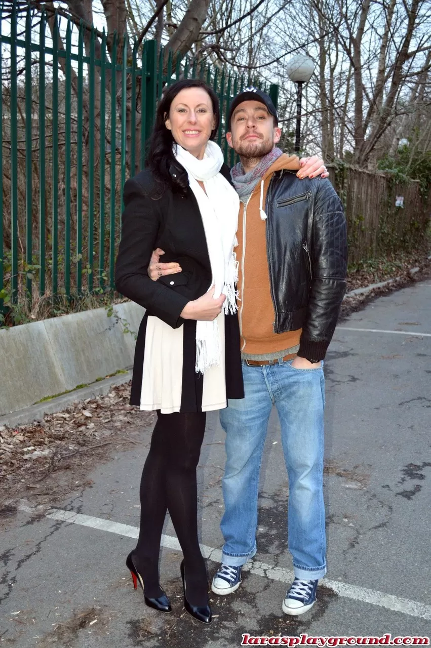 Высокую женщину трахает большой пенис в черных нейлоновых чулках и туфлях на красной подошве