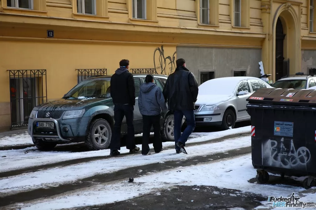 Возбужденную девушку забирает пара парней для ММФ секса у нее дома