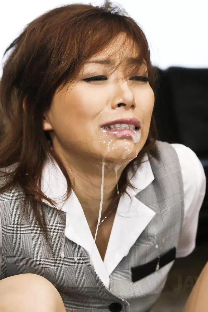 Японскую хозяйку Кейто Миядзаву трахают в рот, пока она закована в свою униформу