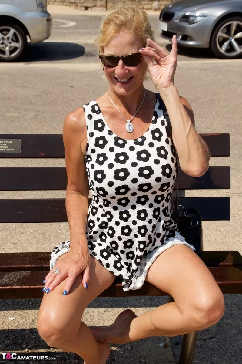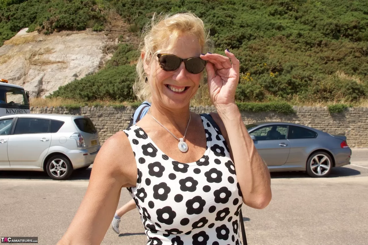Зрелая блондинка Молли МИЛФ обнажает свои сиськи и нижнее белье на пляже