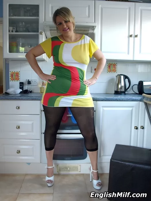 Зрелая домохозяйка из Великобритании разрывает свои чулки без ног в сольном действии
