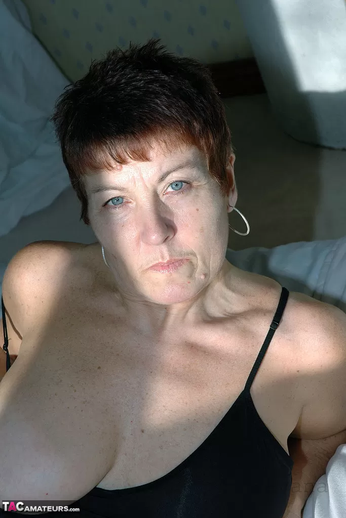 Зрелая рыжеволосая Савана коротко стрижет волосы во время жесткого траха от первого лица на кровати